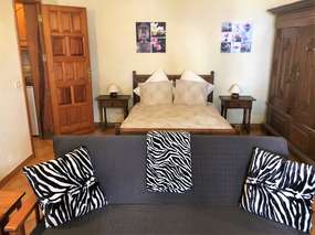 Die Ferienwohnung ist mit 2 Schlafzimmer, Wohnraum mit offener Küche und Badezimmer. Ein Schlafzimmer ist mit 2 Einzelbetten (je 90x190), das 2. mit einem Doppelbettt (135x190) und zusätzlich gibt es noch ein Schlafsofa. Das Badezimmer ist mit einer Badewanne mit Dusche.