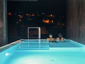 Die Außenterrasse ist nach Süden ausgerichtet und verfügt über einen großen Pool, ein ganzjährig beheizter Hybrid aus in- und Outdoor, der auch bei kühleren Temperaturen ein wunderbares Badeerlebnis ermöglicht. Gartenmöbel, Sonnenliegen und einen Grill. Auch von hier aus genießen Sie die wunderbare Aussicht mit Blick auf die Stadt und den Atlantik.