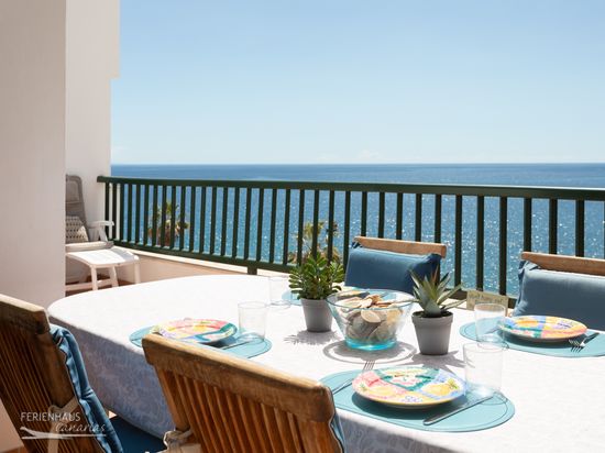 Von Ihrer Terrasse haben Sie einen traumhaft schönen Blick aufs Meer. Genießen Sie hier schon morgens Ihr Frühstück und Abends bei einem Glas Wein den Tag mit Blick auf den Atlantik ausklingen lassen.