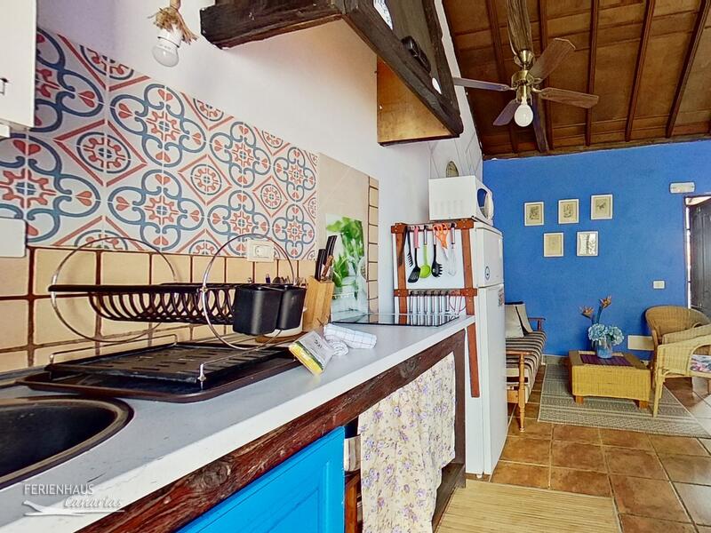 Die Einrichtung in der Ferienwohnung in Tegueste ist gemühtlich mit typisch kanarischen Flair. Das Schlafzimmer mit Doppelbett und Kleiderschrank ist geräumig. In der Küche finden Sie alles, was man zum Kochen benötigt wie: Cerankochfeld, Kühlschrank, Mikrowelle, Toaster, Entsafter usw, Wasserfilter Brita, etc.). Das Bad ist mit einer Dusche mit Hydromassagefunktion, Waschbecken, WC, Föhn und Bademänteln ausgestattet.