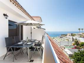 Zur Wohnung dazu gehört ein möblierter Balkon von dem Sie unter anderem auch Blick auf das Meer, an klaren Tagen bis hin zur Nachbarinsel La Gomera haben. Zusätzlich dazu gibt auf der gleichen Etage ein Solarium, das gerne genutzt werden kann.