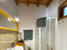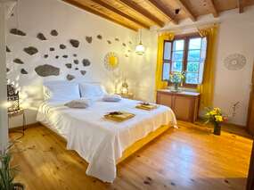 Der Innenhof führt direkt in ein großes, sehr helles Schlafzimmer mit Fenster mit Blick auf den Teide-Vulkan, einem Doppelbett (160x200) und Bad en Suite mit Dusche.