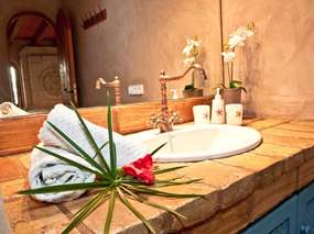 Der Bungalow befindet sich mit drei weiteren Wohneinheiten auf einem 2.000 m² großen Grundstück mit einem exotischen sowie herrlich grünen Palmengarten, der mit seinen lauschigen Plätzen der ideale Ort ist um die Seele baumeln zu lassen.