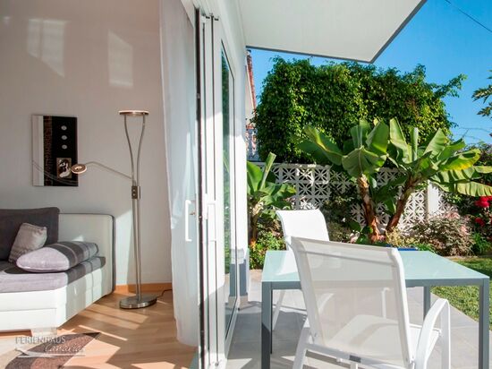 Der moderne Stil und sanfte Brauntöne prägt dieses Ferien-Apartment, die Philosophie der sanften Brauntöne ist Geborgenheit. Die Wohnung mit zwei sonnigen Terrassen befindet sich im Erdgeschoß einer gepflegten, kleinen Apartmentanlage mit Rasengarten im Herzen von Puerto de la Cruz unterhalb vom Taoro-Park. Trotz der zentralen Lage liegt das Grundstück eingebettet im Grünen in einer absoluten Ruhe-Zone, so dass man der Meinung sein könnte, fernab der Stadt zu wohnen.