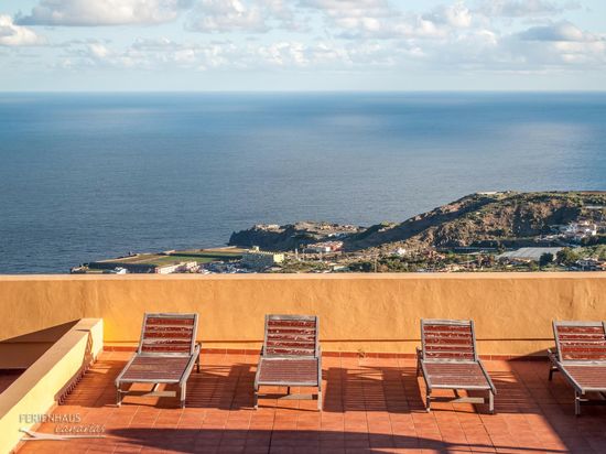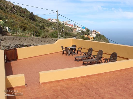 Den Gäste der 4 Wohneinheiten auf der Finca steht eine große, möblierte Dachterrasse mit herrlichem Blick auf das Meer, die Berge und den Teide zur Verfügung.