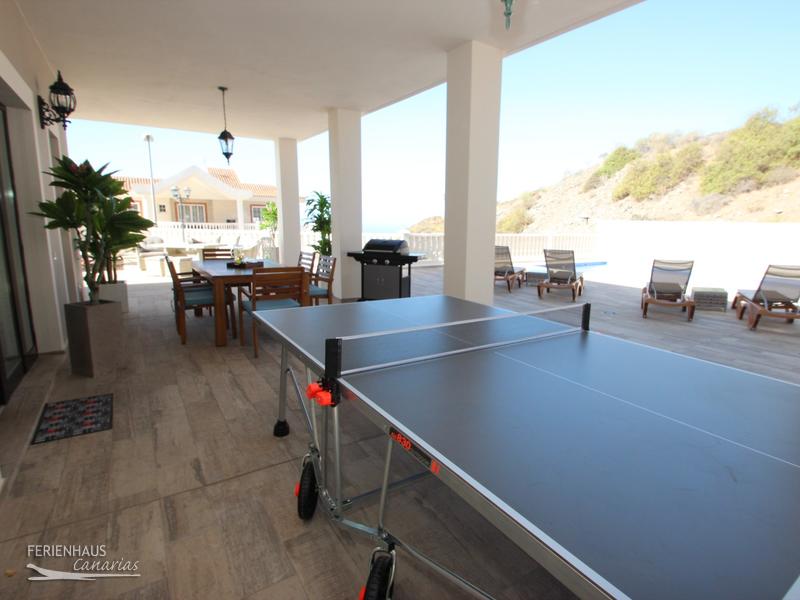 Zum Ferienhaus gehört ein schöner Außenbereich mit einer zum Teil überdachten Terrasse, auf der sich eine Tischtennisplatte, Liegestühle und ein Esstisch befinden. Ein Grill ist hier ebenfalls vorhanden und gleich nebenan wartet ein beheizbarer Pool auf Sie. Genießen Sie im Urlaub Ihren Pool - wann immer Sie wollen --- ob am frühen Morgen - Nachmittags - oder vor dem schlafen gehen,
