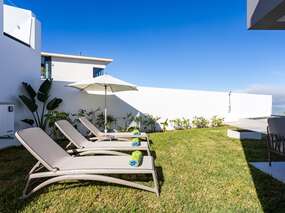 Das Obergeschoss verfügt über zwei Schlafzimmer mit Einzelbetten und zwei Bäder, eines davon mit spektakulärem Blick auf Puerto de la Cruz. Das Hauptschlafzimmer hat zudem einen großzügigen Balkon mit Blick auf den Pool.