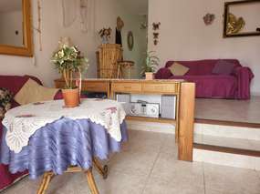 Die Ausstattung des Hauses ist sehr gut, es gibt Internet über prepaid Router Wifi. Das Reihenhaus ist auf 2 Etagen mit ca 90qm verteilt. Das Hauptschlafzimmer liegt im Obergeschoss und hat ein en Suite Badezimmer mit Whirlpoolbadewanne, Waschtisch und Toilette. Fön Bade und Handtücher sind vorhanden. Ebenfalls gibt es angrenzend einen Balkon mit Blick auf Meer und La Gomera.