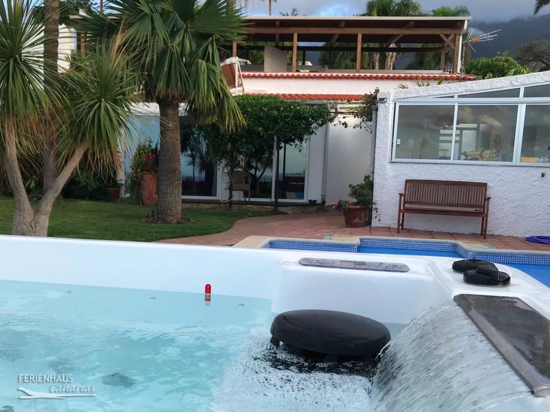 Zum Ferienhaus gehört ein ca. 400 m² großen Garten mit verschiedenem Sitzecken, ein Pool und Whirlpool. Im Garten gibt es zusätzlichen einen offenen Wohnbereich mit einen Esstisch und Sitzplätze für 6 Personen. Hier ist auch der Gartengrill und weiteres Geschirr das Sie zu zu manch schönen Barbeque im Urlaub einlädt. Mit dem "Mirador del Atlantico" gibt es noch eine zusätzliche, überdachte und sehr gemütliche Sitzecke, um den Meerblick in vollen Zügen zu genießen.
