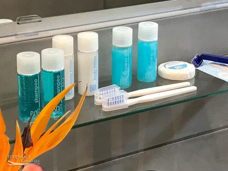 Die drei Schlafzimmer sind alle mit einem Doppelbett ausgestattet. Außerdem Schränke, Nachttische, Bettwäsche mit Duvet, Kissen und Wolldecken. Beide Bäder sind mit Dusche, WC und Waschbecken, sowie Fön. Ein Begrüßungs-Pflegeset ist benfalls vorhanden. Des weiteren liegen für jeden Gast ein Handtuch, ein Duschtuch, ein Pooltuch, Slipper und ein Bademantel bereit.