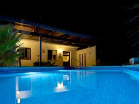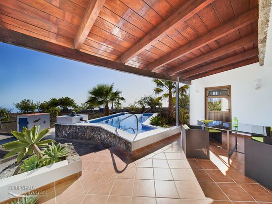 Im Außenbereich des Hauses haben Sie einen Patio mit gemütlicher Sitzecke und einen wunderschönen Blick auf die Umgebung und Ihren privaten Pool. Genießen Sie spektakuläre Sonnenuntergänge, je nach Jahreszeit über dem Meer oder den Nachbarinseln.