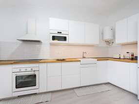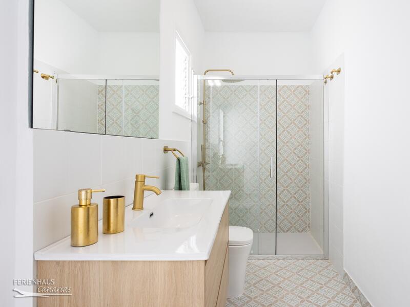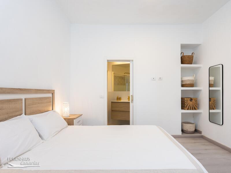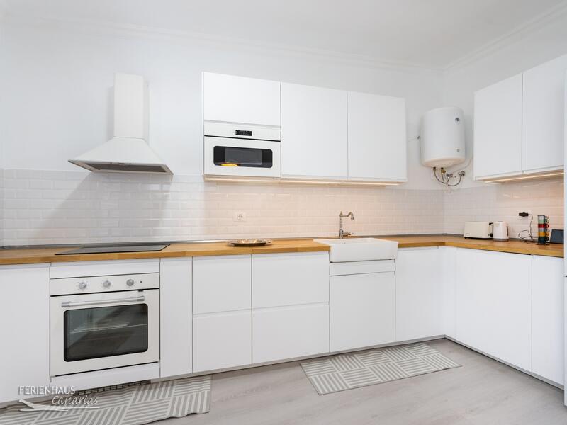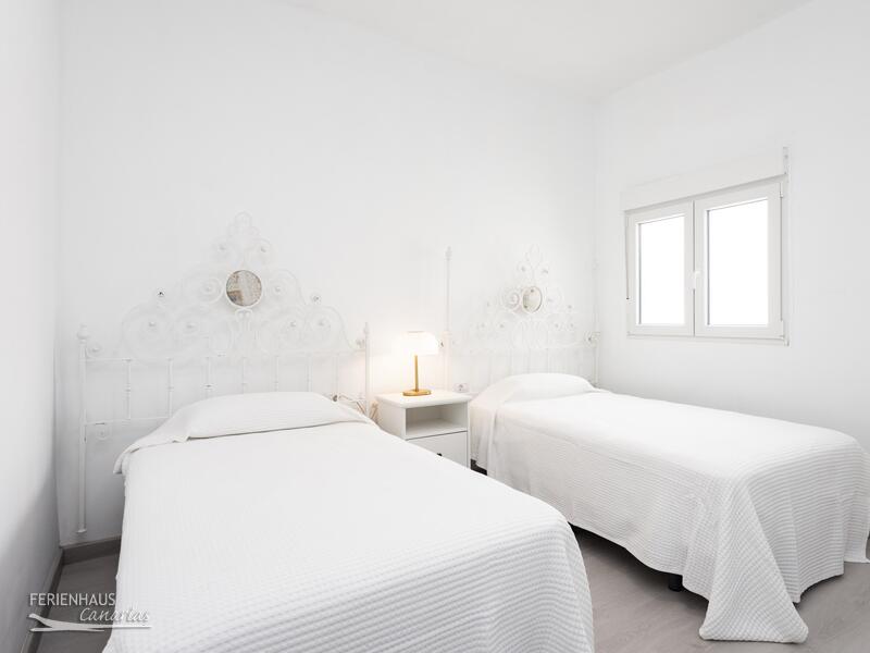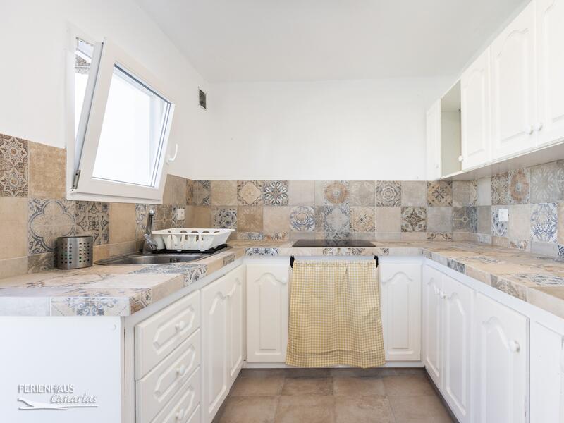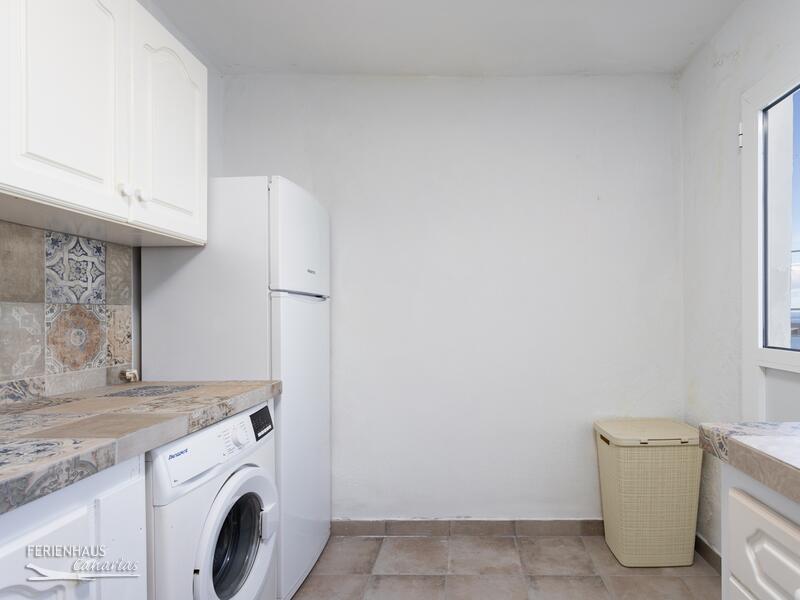 Das Haus verfügt über zwei Schlafzimmer, eines mit Doppelbett und eines mit zwei Einzelbetten. Es gibt zwei Badezimmer, beide mit Dusche. Die Hauptküche ist ausgestattet mit Kühlschrank, Gefrierfach, Backofen, Kochfeld, Mikrowelle sowie weiteres. Klimaanlage und Heizung sind vorhanden. Auch Wlan. Im oberen Bereich befindet sich eine zusätzliche Küche mit Waschmaschine. Ideal wenn man oben grillen möchte. Die grosse Dachterrasse ist möbliert mit Sofas sowie einem Esstisch. Neben der Hauptküche unten gibt es einen kleinen, geschützten Patio mit Tisch und Sitzgeleghenheit.