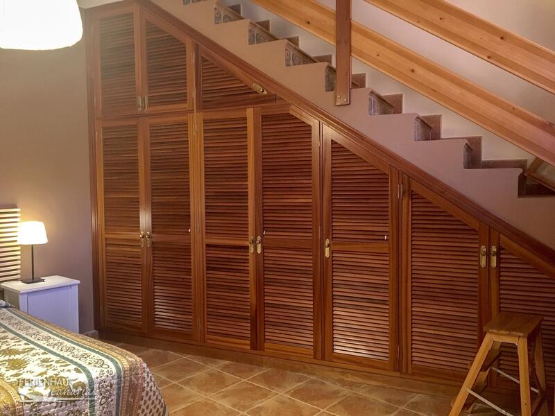 Eine Treppe führt nach unten ins Schlafzimmer. Hier gibt es 2 Einzelbetten (1,90 x 0,90m), die zusammen geschoben werden können und einen geräumigen Einbauschrank.