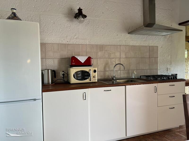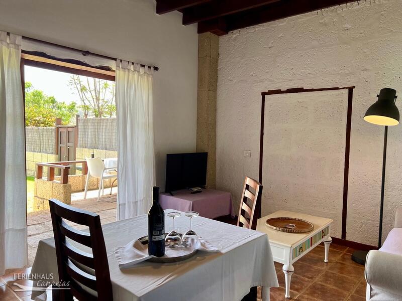 Das Ferienhaus mit Privatpool ist ein restauriertes Haus von ca. 65 qm Fläche mit aus kanarischem Kiefernholz gefertigten Decken, ein Zimmern, ein Bad mit Dusche, Ess-/Wohnzimmer mit Küche, großem Garten mit Sonnenterrasse, Privatpool und herrlichem Blick auf die Berge.