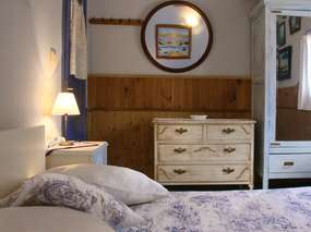 Im geräumigen Wohnzimmer mit bequemen und teilweise antiken Möbeln herrscht eine schöne Atmosphäre. Eines der Sofas kann auch als weiteres Bett (80x190cm) genutzt werden. Des Weiteren gibt es hier einen Fernseher mit Sat-TV (sämtliche dt. Programme) und eine in den Wohnraum integrierte Küchenzeile (4-Platten-Elektroherd, Backofen, Kühlschrank, Spüle, Toaster, Kaffeemaschine, Wasserkocher, etc.). Natürlich steht hier auch ein Esstisch für 6 Personen. Insgesamt gibt es 2 Schlafzimmer, eines der beiden Schlafzimmer ist mit einem Doppelbett ausgestattet, das andere mit zwei Einzelbetten. Das Bad ist mit Dusche, Waschbecken und WC ausgestattet.