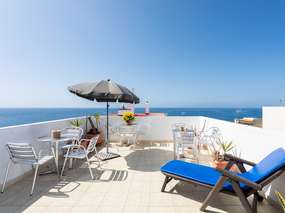 Von der möblierten Terrasse hat man einen traumhaft schönen Blick aufs Meer. Zusätzlich gibt es noch eine große Gemeinschafts - Dachterrasse mit Gartenmöbeln, Liegestühlen und eine gemeinschaftliche Waschmaschine. Von hier hat man einen auch einen weiten Blick auf den Atlantik und bei klarer Sicht bis zur Insel la Gomera.