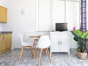 In der Ferienwohnung gibt es ein gemütliches Wohnzimmer mit 2 Sofas, eines davon kann auch als Bett verwendet werden, Küchenzeile mit Backofen, Ceran-Kochfeld, Kühl- und Gefrierkombination, Toaster etc.. Esstheke und Sat-TV mit deutschen Programmen.