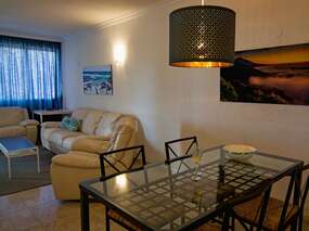 Die Wohnung in Los Cristianos befindet sich in der 2. Etage, ist geräumig, mit einem großen Südbalkon und ein wenig Meerblick. Im Wohnraum mit offener Küche haben Sie zwei bequemen Sofas, Satellitenfernsehen, W-Lan und Klimaanlage. Die Küche ist gut eingerichtet, inkl. Elektroherd, Backofen, Kühlkombi, Mikrowelle, elektrischer Kaffeemaschine, Wasserkocher, Toaster, Waschmaschine und Geschirrspüler.