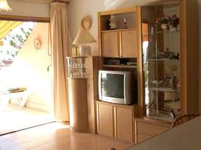 Die Wohnung hat ein Schlafzimmer mit Doppelbet, das Bett ist mit zwei getrennten Matrazen und deutsche Maße. Der Wohnraum ist mit offener, gut ausgestatteter Küche, ausklappbarem Schlafsofa und natürlich auch Sat/TV mit deutschen Programmen bestückt.