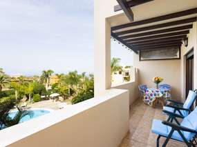Diese grosszügig ausgestattete Wohnung, deren Einrichtung aus dem üblichen Rahmen herausfällt, wird ergänzt durch zwei Terrassen: eine kleine Frühstücksterrasse mit schöner Sicht über die Küste in Richtung Nordost bis Ost. Die von Südosten bis Westen geöffnete Hauptterrasse bietet phantastische Aussichten auf das Meer, das Gebirge mit dem Teide und auf eine ausgedehnte tropische Pflanzenwelt.
