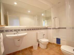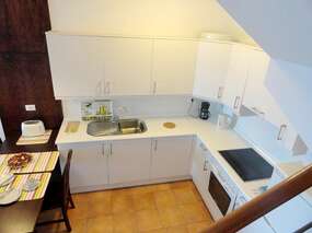 Die Ferienwohnung verfügt über Sat-TV und einen Wohnbereich mit 2 Schlafsofas. Ein Backofen, ein Herd und ein Kühlschrank stehen im zum Salon hin offenen Küchenbereich bereit. Das Badezimmer ist mit einer Badewanne ausgestattet. Bettwäsche und Handtücher liegen für Sie bereit.