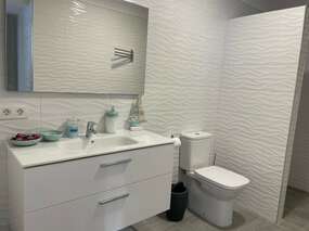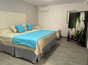 Das geräumige und moderne Badezimmer ist mit einer offenen Dusche ausgestattet sowie mit WC und Waschbecken, Haartrockner und Annehmlichkeiten. Das Hauptschlafzimmer verfügt über ein bequemes und breites 2 x 2 m großes Bett, ein Einzelbett und einen großen Kleiderschrank. Das zweite Schlafzimmer verfügt über 2 Einzelbetten. Die Schlafzimmer verfügen über eine Klimaanlage, um eine perfekte Erholung zu gewährleisten