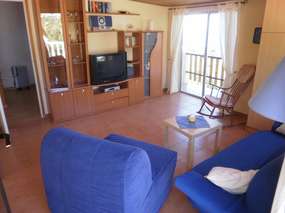 Der Wohnraum ist zwar einfach -> aber dennoch mit einer Sofaecke, Esstisch, TV und Stereoanlage und einer Küchenzeile mit einem 4-Plattenherd, einem kleinen Backofen, einem Kühlschrank mit Gefrierfach, Kaffeemaschine, Toaster und anderen Küchenutensilien eingerichtet.