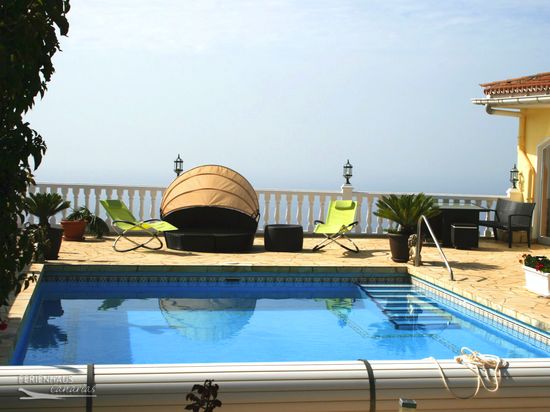 Es gibt auf dem Grundstück einen beheizten Pool, den Sie nach Absprache mit den Vermietern gemeinschaftlich mitnutzen können. Zwei Etagen tiefer (das Grundstück ist auf Terrassen angelegt) befindet sich eine Liegewiese und im Nutzgarten ist ein Grillplatz vorhanden.