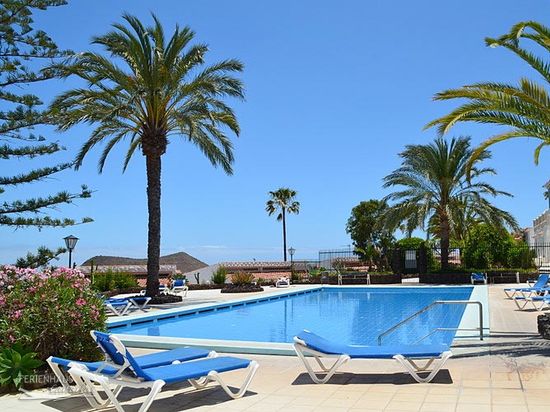 Zur Anlage gehört ein von Palmen umspielter beheizter Gemeinschaftspool ( 10 x 18 m ) Die kostenlosen Liegen laden zum Relaxen und bieten ein sagenhaftes Panorama auf Los Cristianos, Playa de las Americas, die umliegenden majestätischen Berge und im direkten Kontrast dazu dem tiefblauen Atlantik.