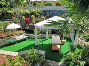 Bis zum Meer und Badestrand sind es nur 3 km. Nach Guia de Isora sind es nur knapp 2 km und zum Golfplatz Abama nur 4 km. Alle anderen Golfplätze im Süden sind in ungefähr 20 Minuten zu erreichen. Der Badestrand von Playa San Juan ist nur ca. 3km entfernt. Weitere Strände finden Sie in Los Gigantes, El Puertito, Playa Fanabe, Costa Adeje und Playa Las Americas und viele mehr...