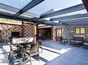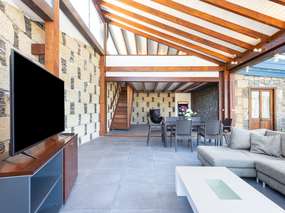 Das gemütliche Finca-Ferienhaus besticht mit einer Mischung aus Naturstein, Holz und weiteren modernen Komponenten, welches ein gemütliches Flair schafft.