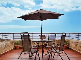 Im Obergeschoss (über eine Aussentreppe erreichbar) befinden sich die beiden Schlafzimmer, eines davon mit Doppelbett (160 x200) mit einer Komfort- Matratze "Fresh Spring Visco Ensacado", das andere mit zwei Einzelbetten sowie ein Bad mit Dusche, Waschbecken und WC. Von den Schlafzimmern haben Sie Zugang zur möblierten Dachterrasse mit toller Aussicht auf die Umgebung und das Meer.