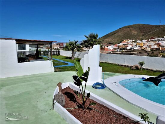 Die hübsche Ferienwohnung mit tollen Meerblick befindet sich auf einer 8000m² großen Finca mit temperiertem Pool in San Bernardo, im grünen Norden Teneriffas, zwischen den Orten Los Silos und Buenavista del Norte (etwa 100-150m über dem Meer). Zur Ferienwohnung gehört ein eigener, rund 100 qm großer Garten mit zusätzlich überdachtem Sitzplatz. Im sonnigen Außenbereich gibt es aber natürlich ebenfalls Sitzmöglichkeiten zum Frühstücken, oder relaxen.