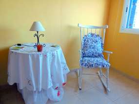 In der oberen Etage des Hauses finden Sie das großzügige Schlafzimmer mit einen Doppelbett (es besteht aus zwei zusammengestellte Einzelbetten), einem Sofa, das als zusätzliches Bett genutzt werden kann, einem Nachtschrank und einem Tischchen. Im Obergeschoss finden Sie ein weiteres Badezimmer mit Toilette, Waschtisch und Dusche