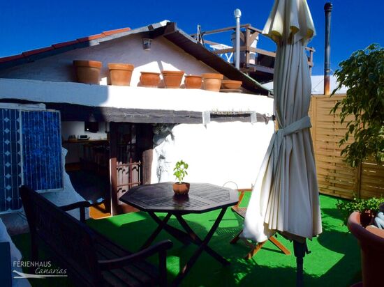 Im Aussenbereich haben Sie einen möblierten Patio und einen Grill! Zudem gibt es eine mit Holzmöbeln ausgestattet Dachterrasse von der Sie einen wunderbaren Blick auf den Teide, das Tal und das Meer haben.