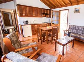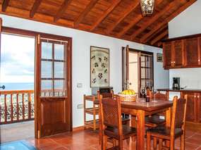 Im Urlaub mal etwas anders wohnen - das kann man in diesem ehemaligen Weinkeller der Finca. Große Glastüren im Wohnraum mit Küche geben einen wunderbaren Blick auf den Atlantik frei. Das Häuschen Bodega empfängt ihre Gäste mit zwei Schlafzimmern - eines mit Doppelbett, eines mit zwei Einzelbetten, einem schön eingerichteten Wohn-, Esszimmer mit offener Küche, Sofa und SAT-TV. Die umfangreich ausgestatteten Küche ist unter anderem mit einem Herd, Mikrowelle, Toaster, Kaffeemaschine, Mini-Kühlschrank, Mixer, Saftpresse und anderen Küchenutensilien. Das Badezimmer ist mit Dusche.