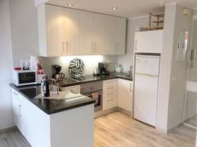 In der Ferienwohnung gibt es ausreichend Schränke ohne überladen zu sein. Das Bad ist mit einer modernen ebenerdigen Regendusche, Haarfön und Waschmaschine ausgestattet. Die Küche ist mit allem was Selbstversoger benötigen umfangreich ausgestattet. Auch eine Microwelle, Spülmaschine und eine Backofen ist vorhanden.