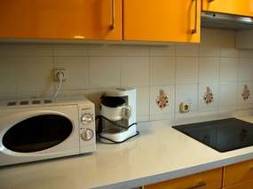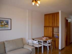 Die Küche wurde, für Selbstversorger, komplett ausgestattet. Im Wohnbereich gibt es zum einen eine Couch mit Schlaffunktion und zum anderen einen Essbereich mit Tisch und Stühlen. Von hier aus gelangen Sie auf den möblierten Balkon, von dem Sie den Meerblick genießen können.
