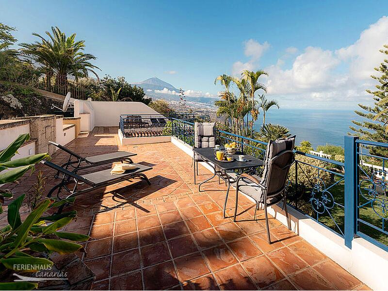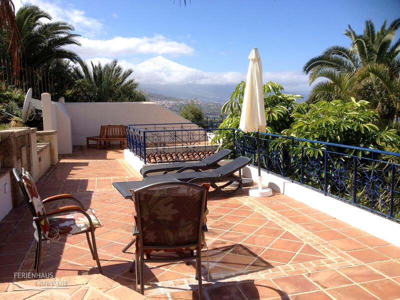 Auf der weitläufigen Terrasse können Sie die Seele baumeln lassen - Sonne tanken oder auch ein Glas Wein trinken und den Blick auf das Meer und den Teide genießen. Von der Terrasse führt eine private Aussentreppe hinunter in den Wellnessbereich mit Sauna und Hallenbad.