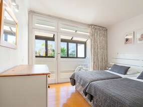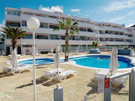 Zur Wohnanlage gehört ein schöner Poolbereich mit Sonnenliegen. Die Anlage liegt nur rund 350 Meter vom Strand Playa de Las Vistas entfernt. Es gibt keinen Aufzug zu den Wohnungen.