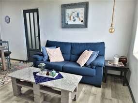 In der ganzen Wohnung befinden sich Dachfenster von denen aus man nachts den Sternenhimmel sehen kann. Im Wohnzimmer mit bequemen Sofa und großer Flachbildschirm der neuesten Generation sowie mit Küchenzeile kann man aus großen Panoramafenstern die Aussicht auf den Ort und weit über den Atlantik geniessen. In der Küche findet sich alles, was zum selbst versorgen nötig ist, Toaster, Backofen, 4-Flammen- Elektroherd, saftpresse, Kaffeemaschine, Wasserkocher, Kühl-Gefrierkombination, Pfannen Töpfe, Geschirr, Gläser und Schüsseln.