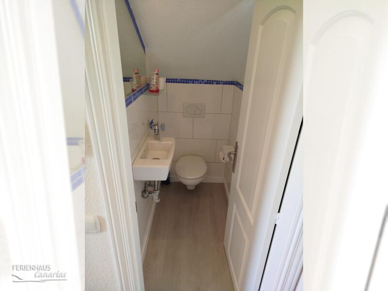Die beiden Schlafzimmer mit Doppelbett und das Badezimmer mit Dusche befinden sich in der oberen Etage der Wohnung. Im unteren Teil der Wohnung befindet sich das Gäste WC, das kleine Schlafzimmer mit Einzelbett (105x200 mit Schreibtisch (auch als Büro nutzbar).