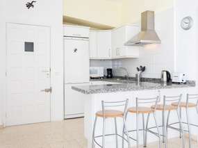 Die 70m² Ferienwohnung für 4 Personen wurde komplett neu modernisiert und schön hell eingerichtet. Im Wohnbereich ist ein gemütliches Sofa, Fernseher und WLAN und in einer verschließbaren Nische ein Etagenbett für zum Beispiel 2 Kinder. Wird das Etagenbett nicht benötigt, lässt es sich durch zwei Türen schnell verstecken. Ideal für einen Strandurlaub auf Teneriffa mit der Familie.