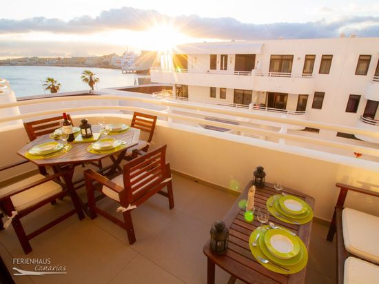 Vom windgeschützten und möblierten Balkon in Südlage hat man Blick auf das Meer und den Montana Roja.