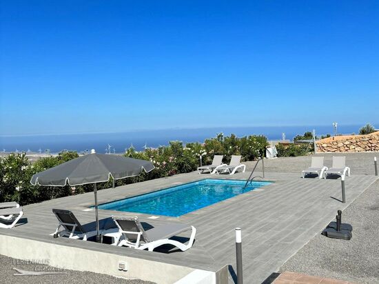 Neu in der Vermietung - Ferienhaus komplett neu gebaut und eingerichtet auf wunderbar ruhig gelegenen Finca mit beheizten Pool!!! Das Haus befindet sich auf der Poolebene der Finca mit Blick auf den Pool bis hin zum Meer.