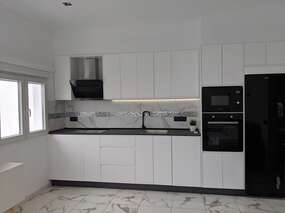 Das hier beschrieben Ferienhaus, eine Haushälfte, wurde im August 2024 fertig gestellt und komplett neu eingerichet. Es erwartet Sie ein Wohnraum mit offener Küche, ein Schlafzimmer und ein Badezimmer. Der Wohnraum ist großzügig, durch die Glasfront sehr hell und mit einem Esstisch, Sofalandschaft, Flachbildfernseher und einer Küchenzeile eingerichtet. Sie haben hier eine sehr gute Küchenausstattung inklusive Geschirspüler, Kühl-/Gefrirrkombi, Backofen und Mikrowelle, ausreichend Geschirr und Töpfen, sowie Pfannen.