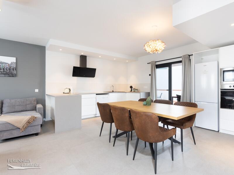 Das Ferienhaus liegt nur wenige Meter vom Meer entfernt, in Puertito de Los Silos. Es handelt sich um eine ganz neu gebautes, modernes Ferienhaus mit grosser Terrasse plus Dachterrasse mit wunderbaren Meerblick, 4 Schlafzimmer, 3 komplette Badezimmer, ein grosses Wohn-Esszimmer mit offener Küche und direktem Zugang zu der Terrasse wo sich auch ein Grill befindet. Das ganze Haus verfügt über eine Klimaanlage.