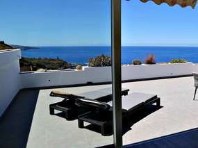 - Aussichtsterrasse mit traumhaftem Meerblick, Gartenmöbeln & Sonnenliegen