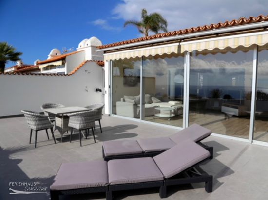 Tolle Penthouse - Wohnung mit fantastischem Meerblick und Wlan bei Puerto de La Cruz. Die Wohnung befindet sich in einem privaten Haus am Ende einer Sackgasse, im ruhigen Wohngebiet “La Romantica I” in Los Realejos bajo (an der Küste).