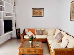 - Wohnzimmer mit Satelliten- und Digital-TV und DVD mit direktem Zugang zur Terrasse.